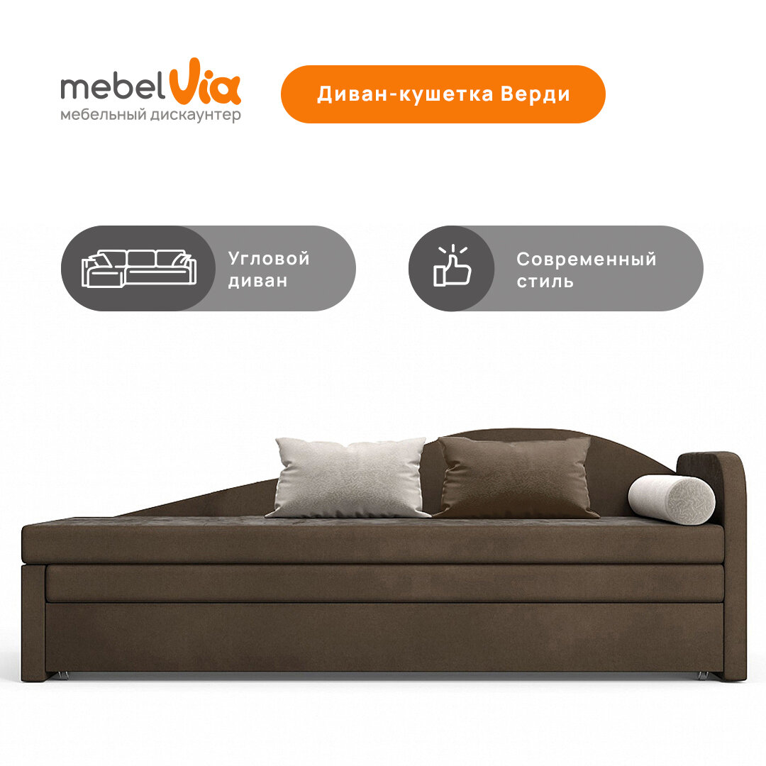 Диван-кушетка Верди Левый угол, коричневый, велюр, софа