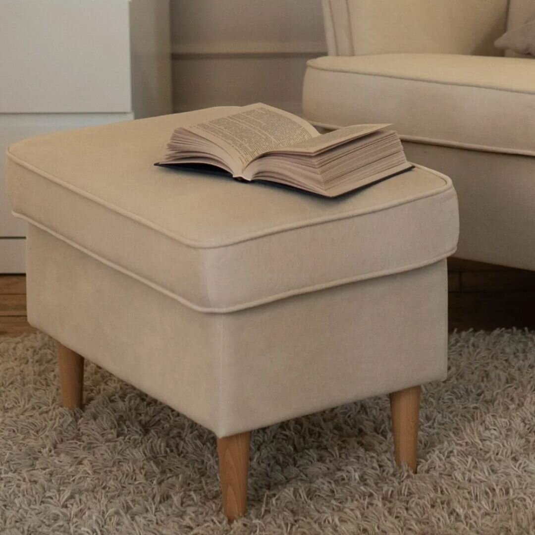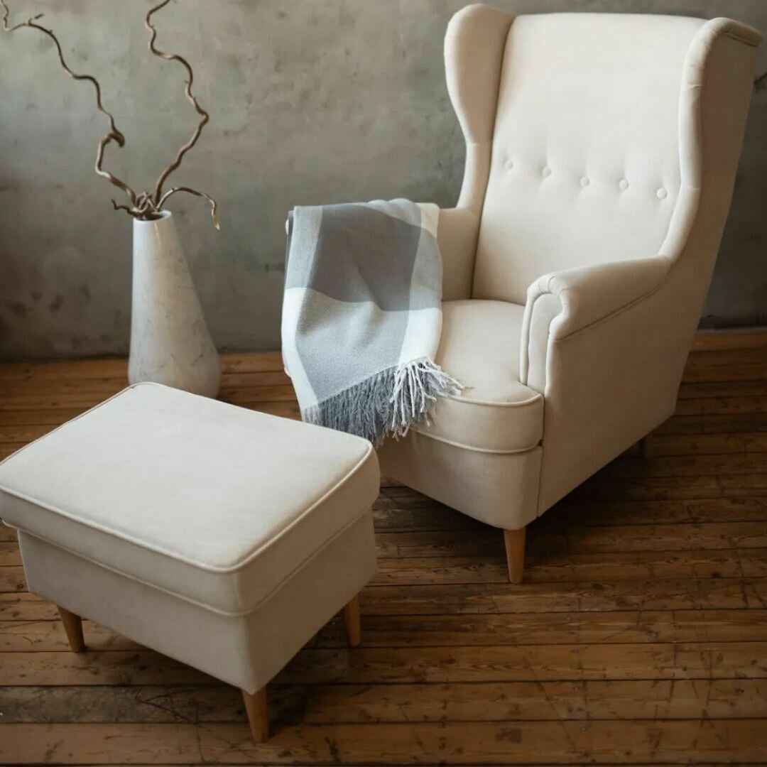 Купить Комплект мебели кресло + пуфик СТРЭНД (STRANDMON) ULTRA IVORY, велюр, слоновая кость