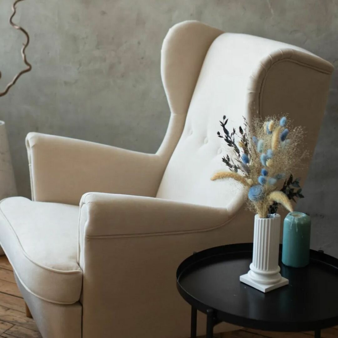 СохранитьКомплект мебели кресло + пуфик СТРЭНД (STRANDMON) ULTRA IVORY, велюр, слоновая кость интересное: