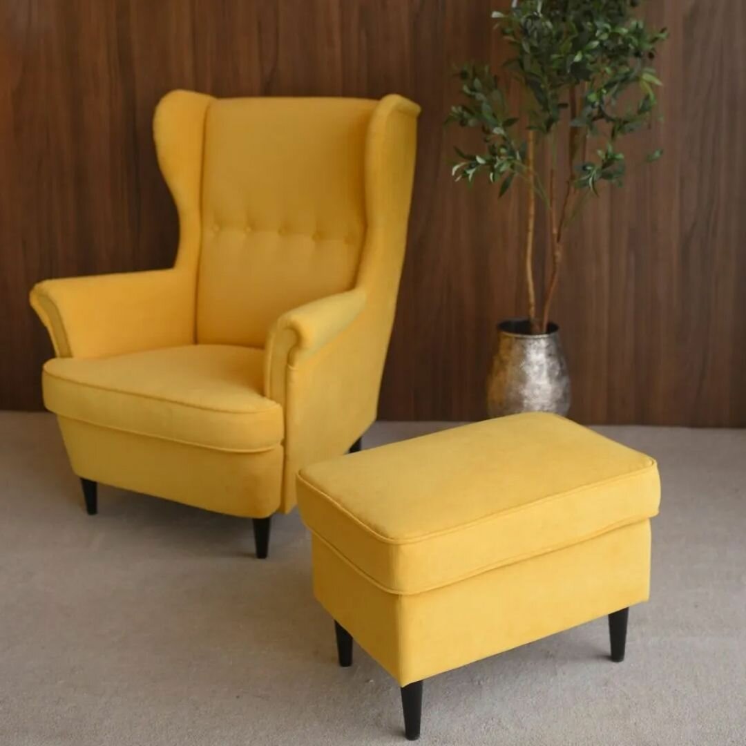 Купить Комплект мебели кресло + пуфик СТРЭНД (STRANDMON) ULTRA YELLOW, велюр, жёлтый