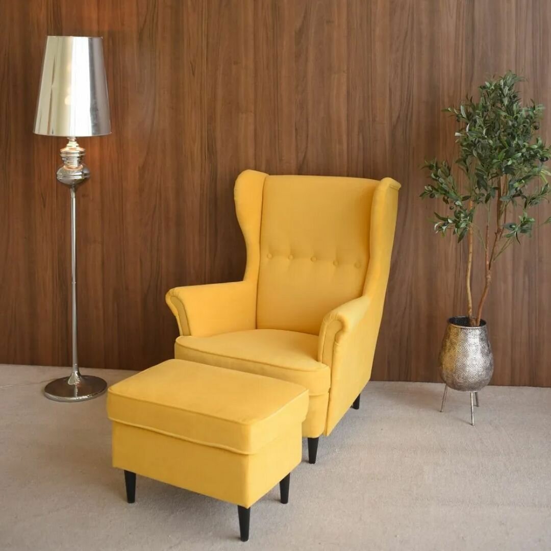 Комплект мебели кресло + пуфик страндмон (стрэнд) ULTRA YELLOW, велюр, жёлтый