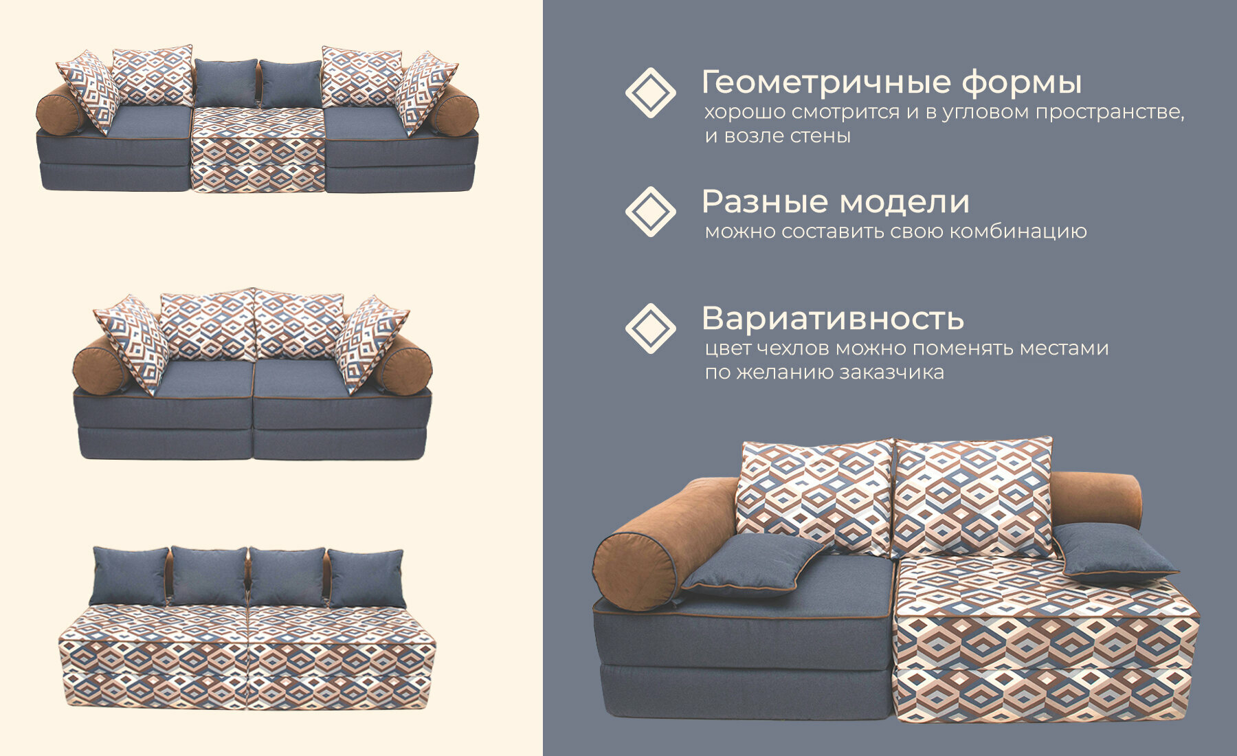 Диван кресло кровать бескаркасный модульный "МИРА" FREE-FORM угловой раскладной в комнату на балкон террасу лоджию интересное: