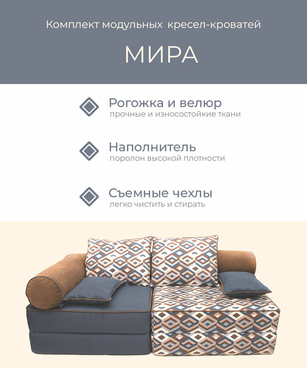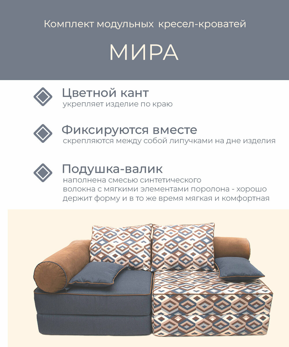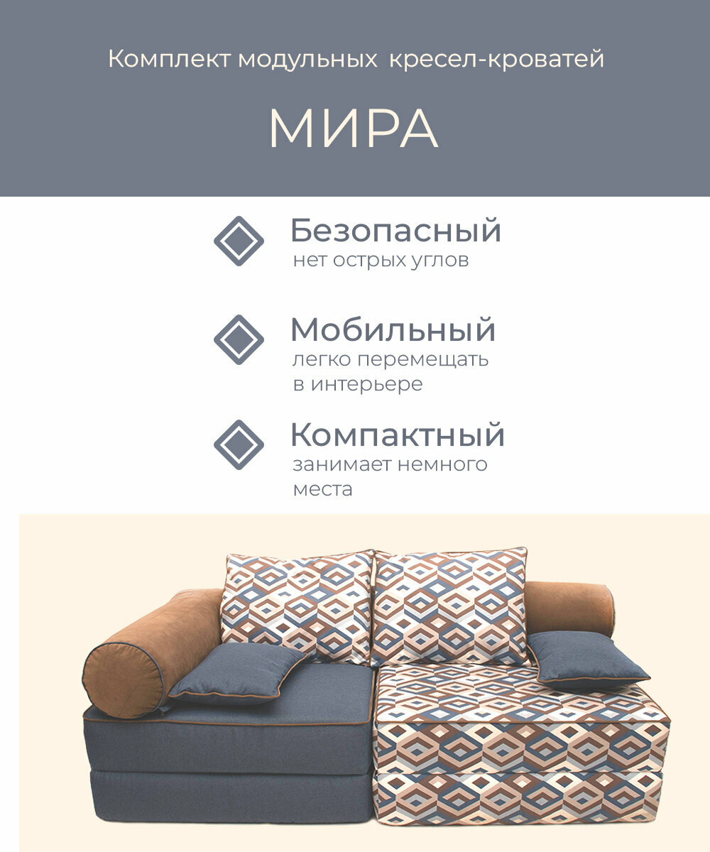 Диван кресло кровать бескаркасное модульное "МИРА" FREE-FORM прямое раскладное в комнату лоджию террасу детскую