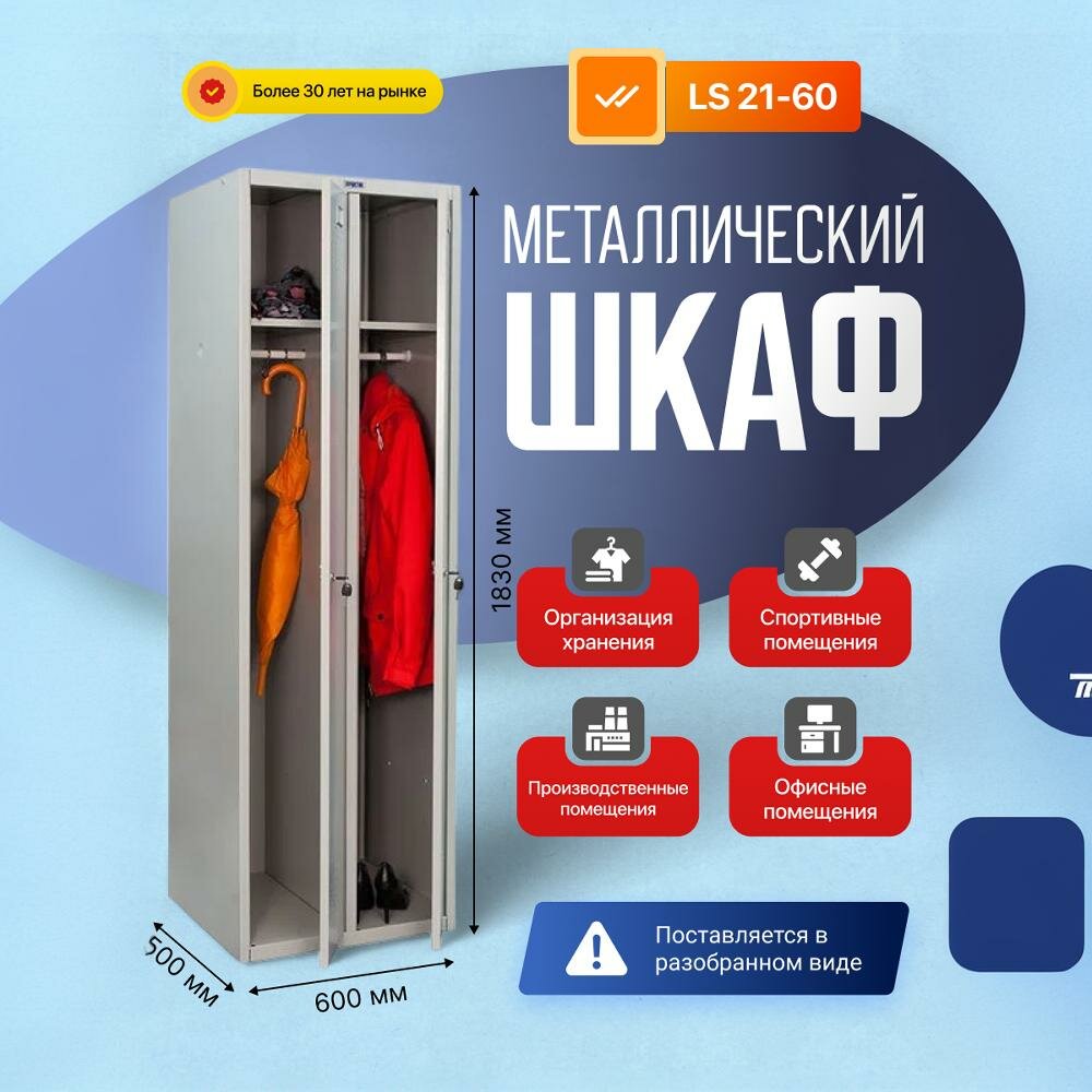 Шкаф металлический для раздевалки ПРАКТИК Стандарт LS-21-60, 186х60х50см, серый, усиленная конструкция интересное: