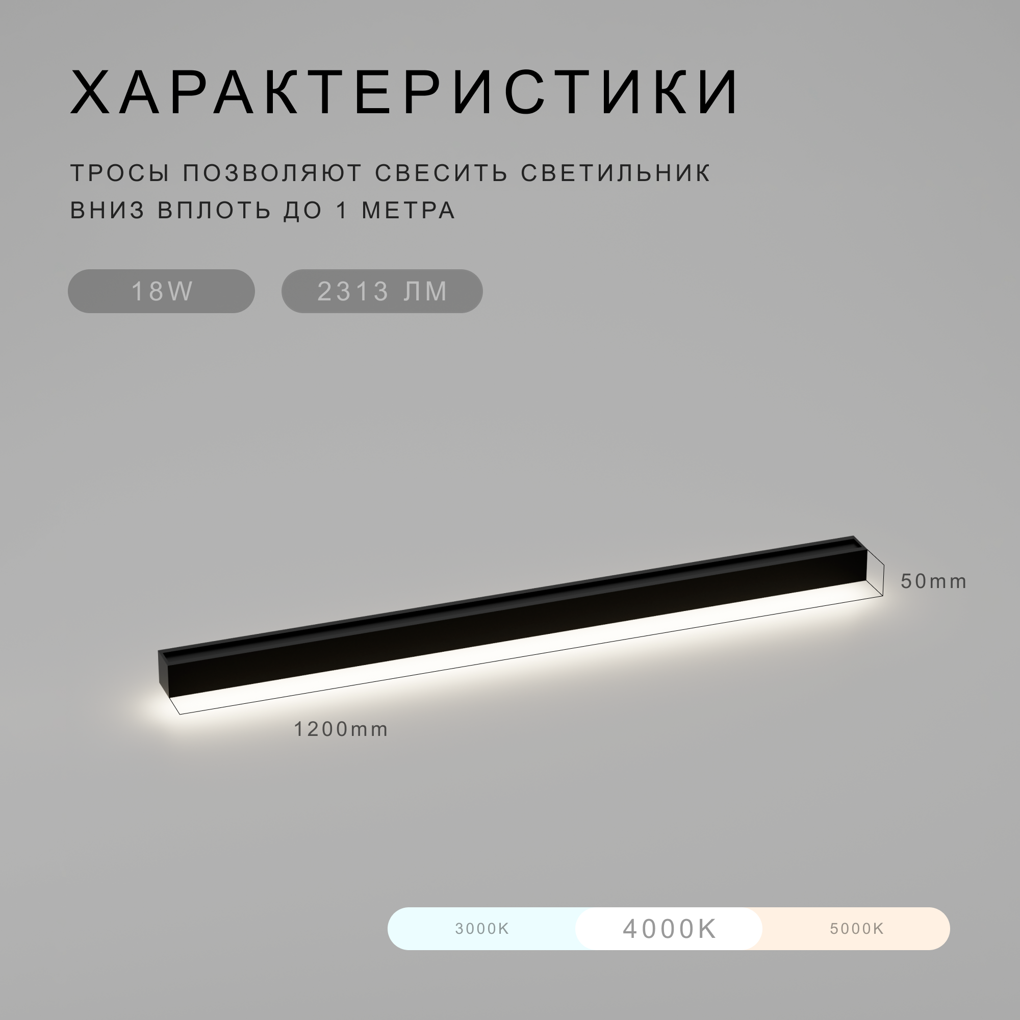 Купить Подвесной светильник "Светолиния", 4000K, 18 Вт, 120*5*5 см, люстра светодиодная, лампа черная