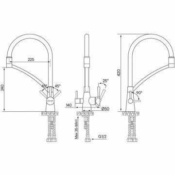 Смеситель Paulmark SIEGEN под фильтр с гибким изливом Si213111-CR, хром/черный шланг