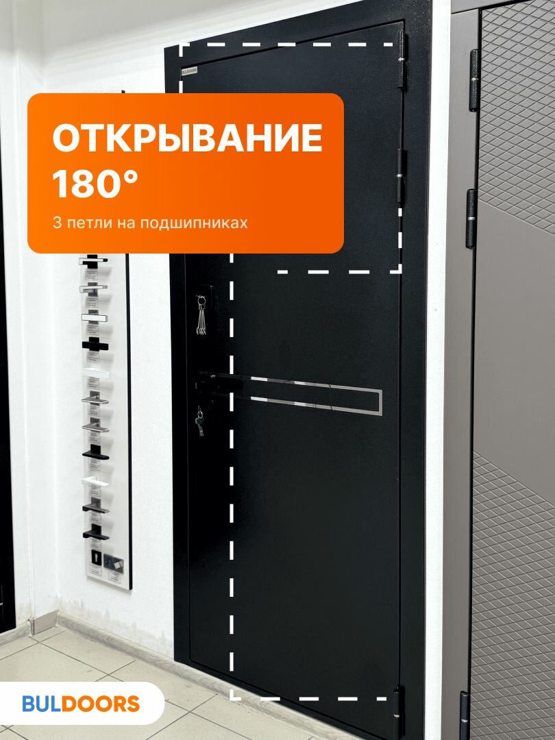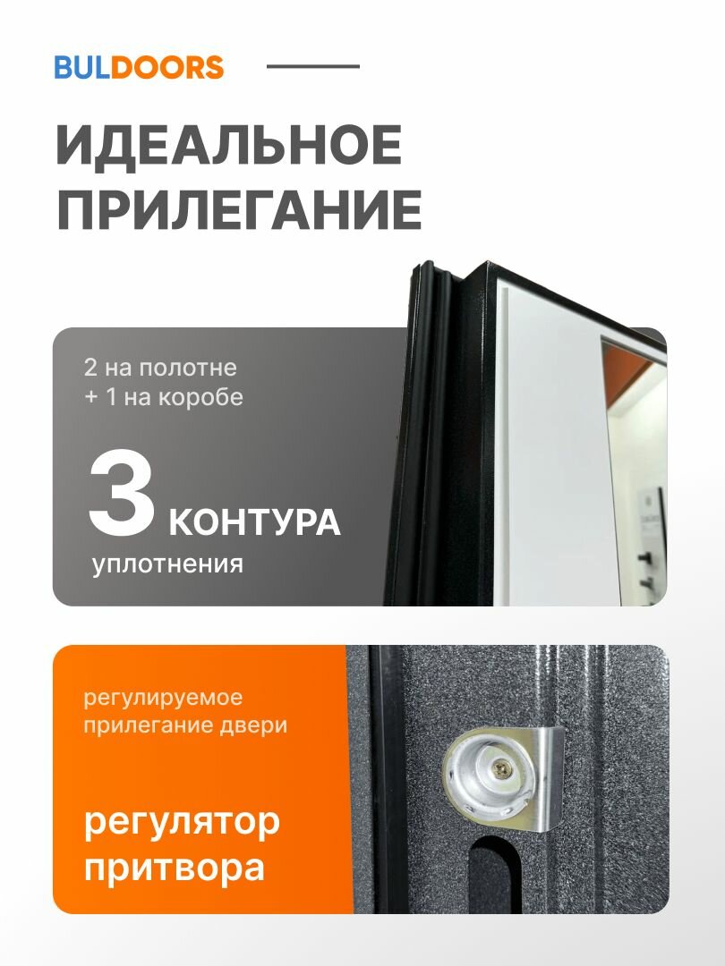 | Дополнительная информация | короб закрытый, цилиндровый замок с вертушком, черная квадратная фурнитура, 3 петли на подшипниках, 3 контура уплотнения, внутренняя панель МДФ 10 мм |