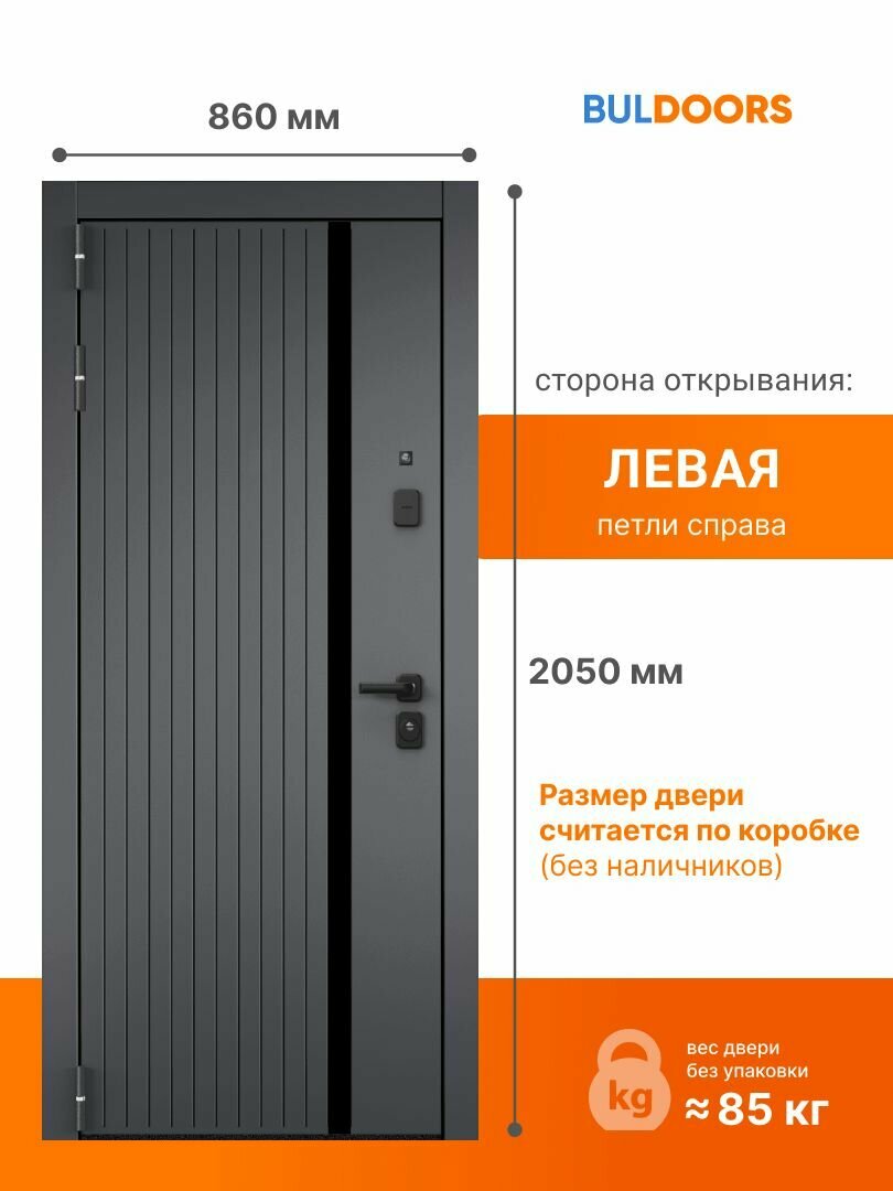 Купить Дверь входная металлическая квартирная бульдорс 90 РP 2050x860 Левая, Шагрень графит - Белый матовый с зеркалом