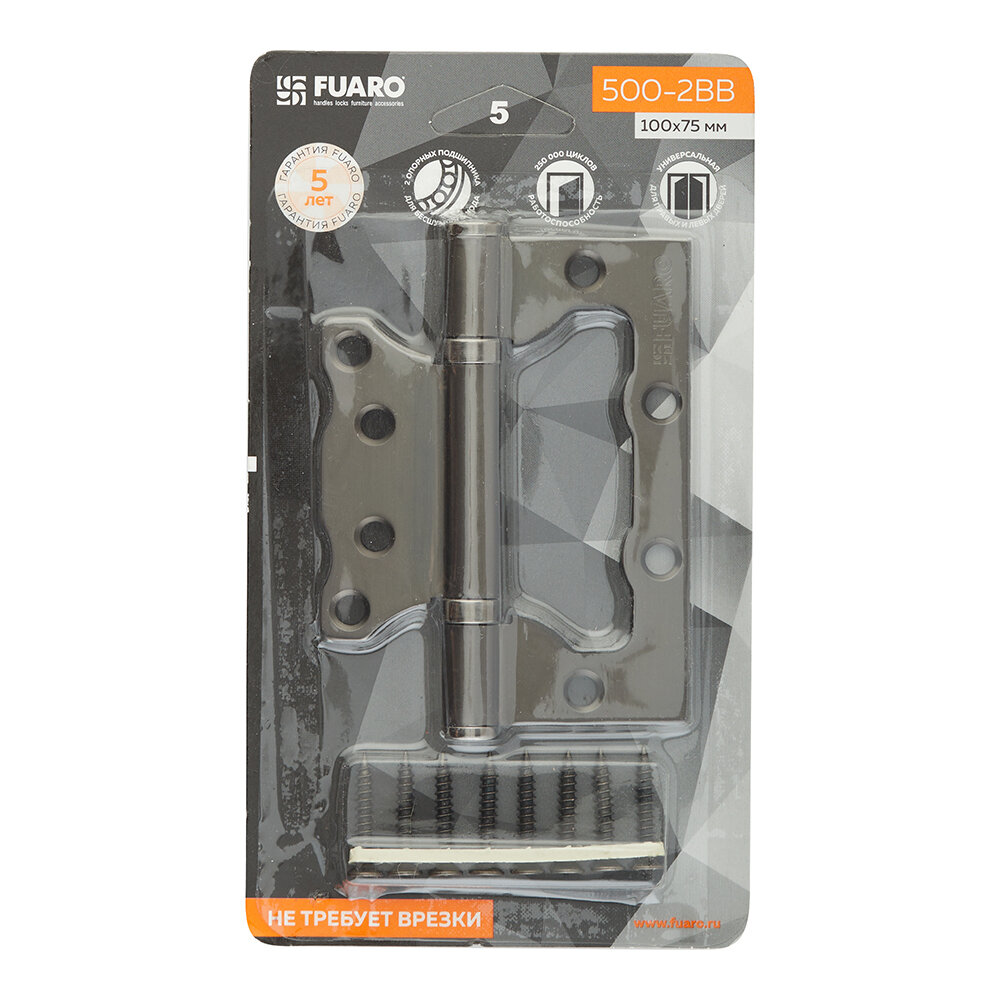 Петля универсальная без врезки Fuaro (Фуаро) IN4500W-BL BL (500-2BB/BL 100x2,5), черный матовый, блистер (комплект 6 штук)