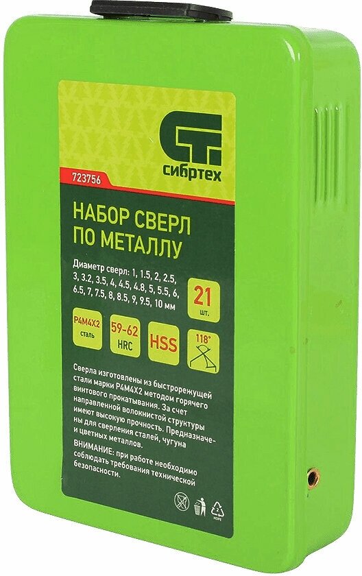Набор сверл СибрТех 723756, HSS, цилиндрический хвостовик, металлический бокс, 21 шт интересное: