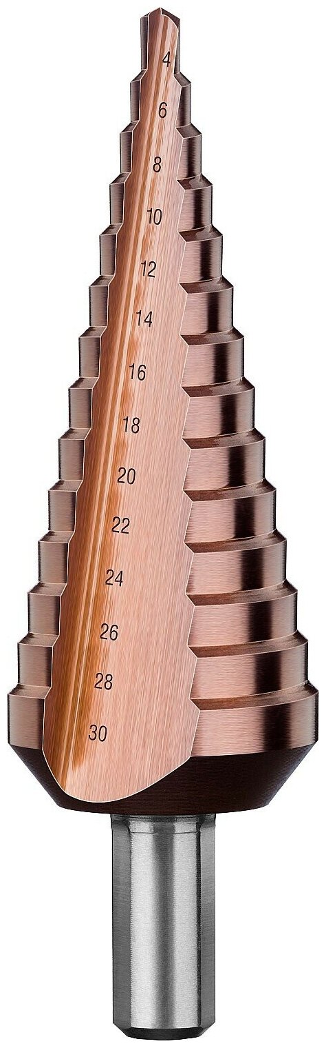 Сверло ступенчатое, 4-30мм, 14 ступеней, кобальтовое покрытие, ЗУБР кобальт, серия Профессионал