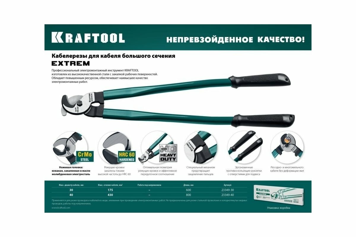 Ниже Вы можете прочитать отзывы на Кабелерез KRAFTOOL KL-30 23349-30, ознакомится с подробными характеристиками, посмотреть интересные обзоры и фотографии на Кабелерез KRAFTOOL KL-30 23349-30.