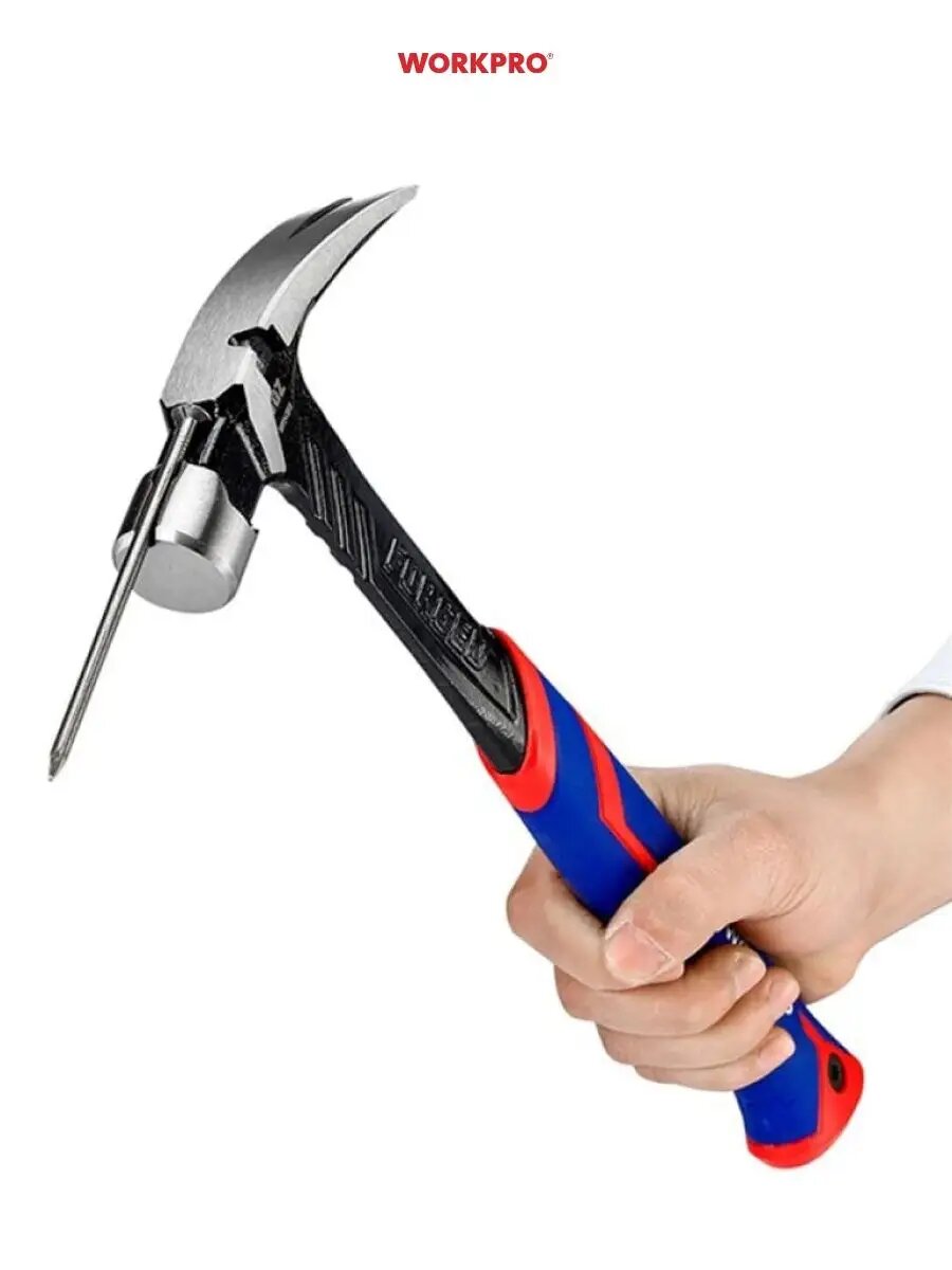 Молоток кованый с гвоздодёром и магн. держателем WP241013, WORKPRO #WP241013
