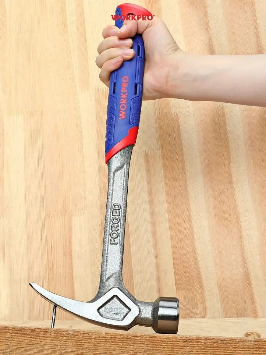 Молоток кованый с гвоздодёром и магн. держателем WP241014, WORKPRO #WP241014