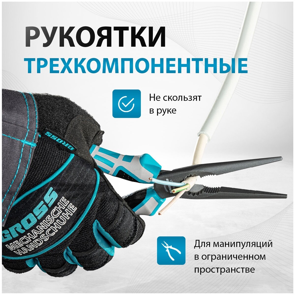 GROSS Длинногубцы прямые 205 мм, трехкомпонентные рукоятки// 17171
