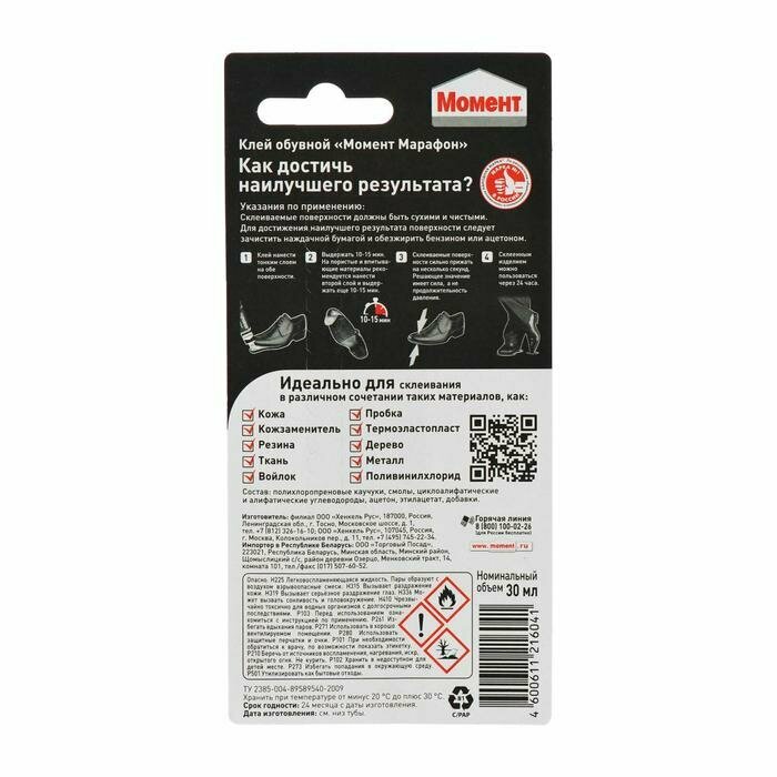 | Дополнительная информация | не содержит толуол; плотность: 0.85-0,87 г/см³; расход: 250- 350 г/м² при нанесении на обе поверхности; склеенным изделием можно пользоваться через 24 часа, конечная прочность склеивания возникает достигается через 72 часа |