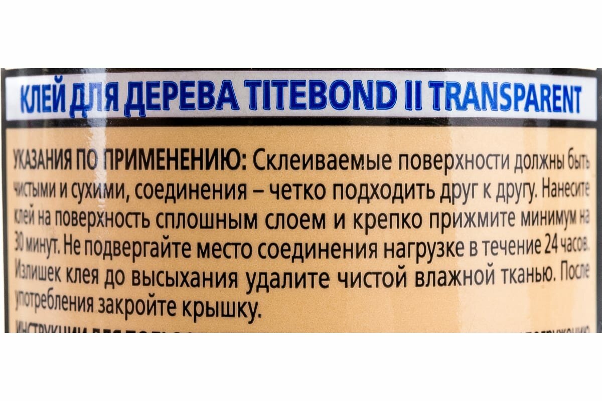 Клей для дерева Titebond II Transparent столярный влагостойкий прозрачный 237 мл 1123