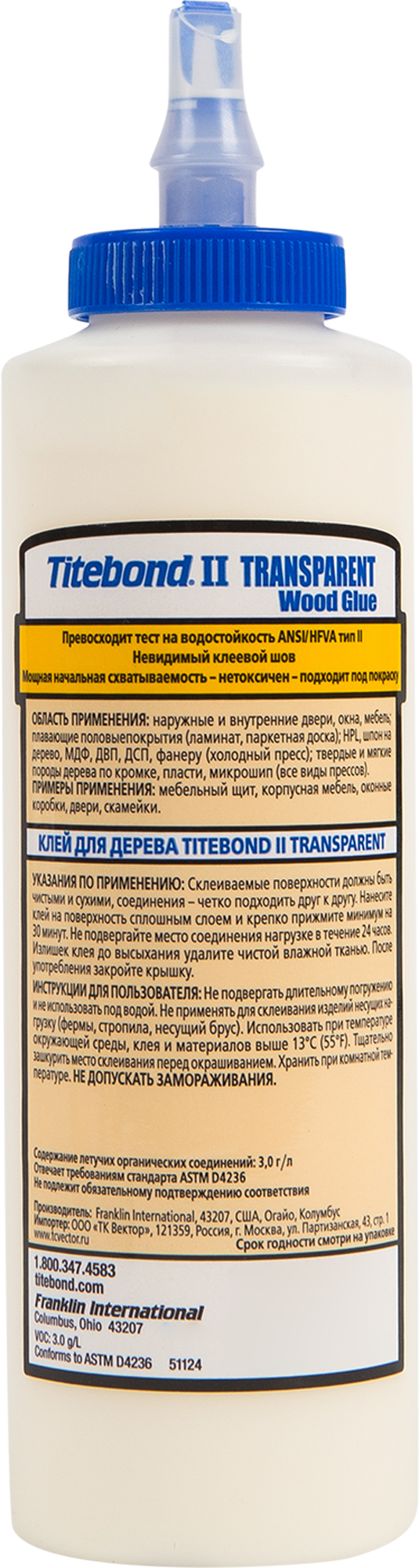 Клей для дерева Titebond II Transparent столярный влагостойкий прозрачный, короб 12шт х 237мл
