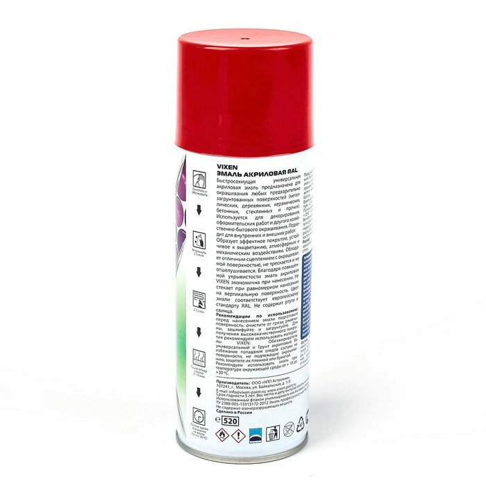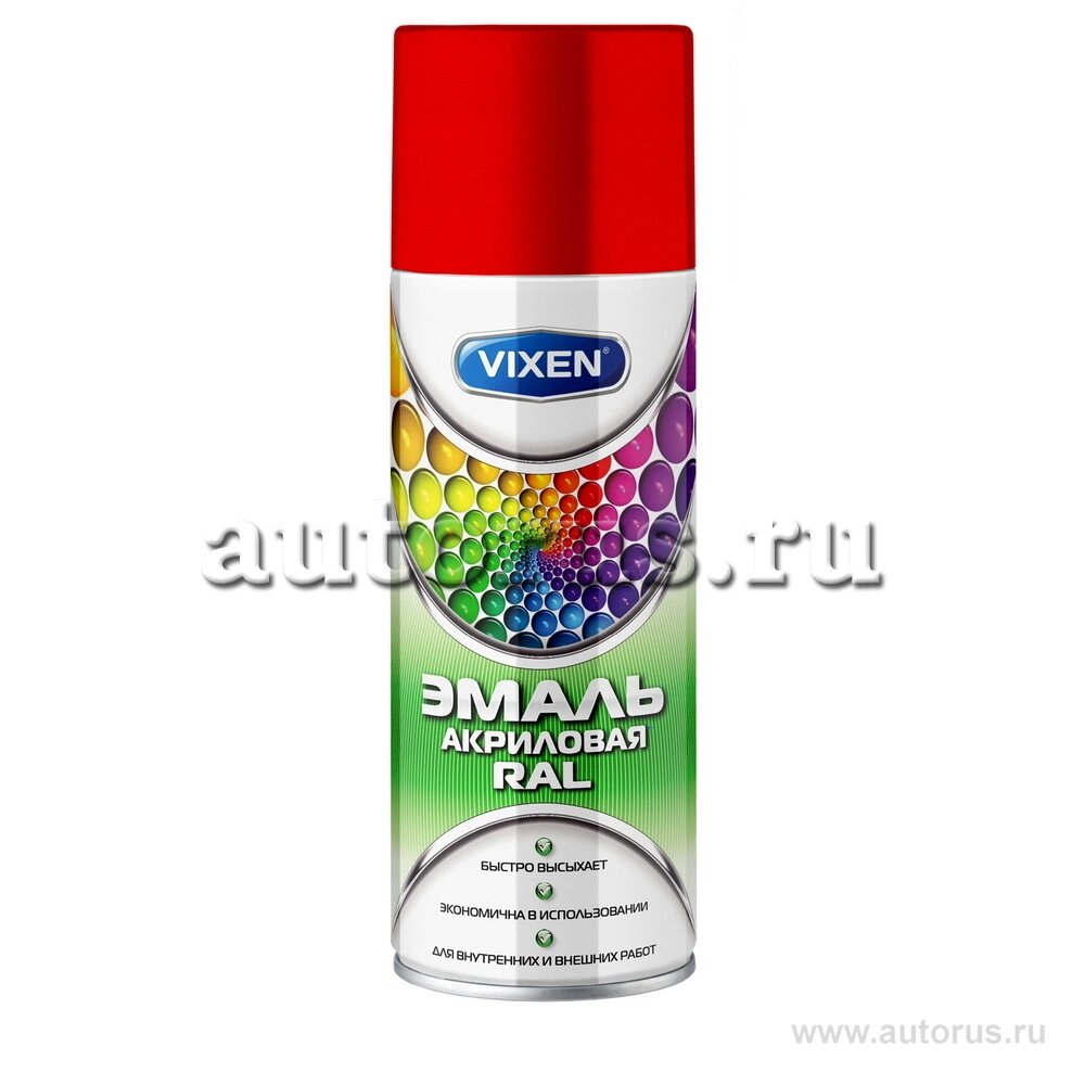 Купить VIXEN VX33020 Эмаль акриловая RAL, транспортный красный (RAL 3020), аэрозоль 520 мл VIXEN VX33020