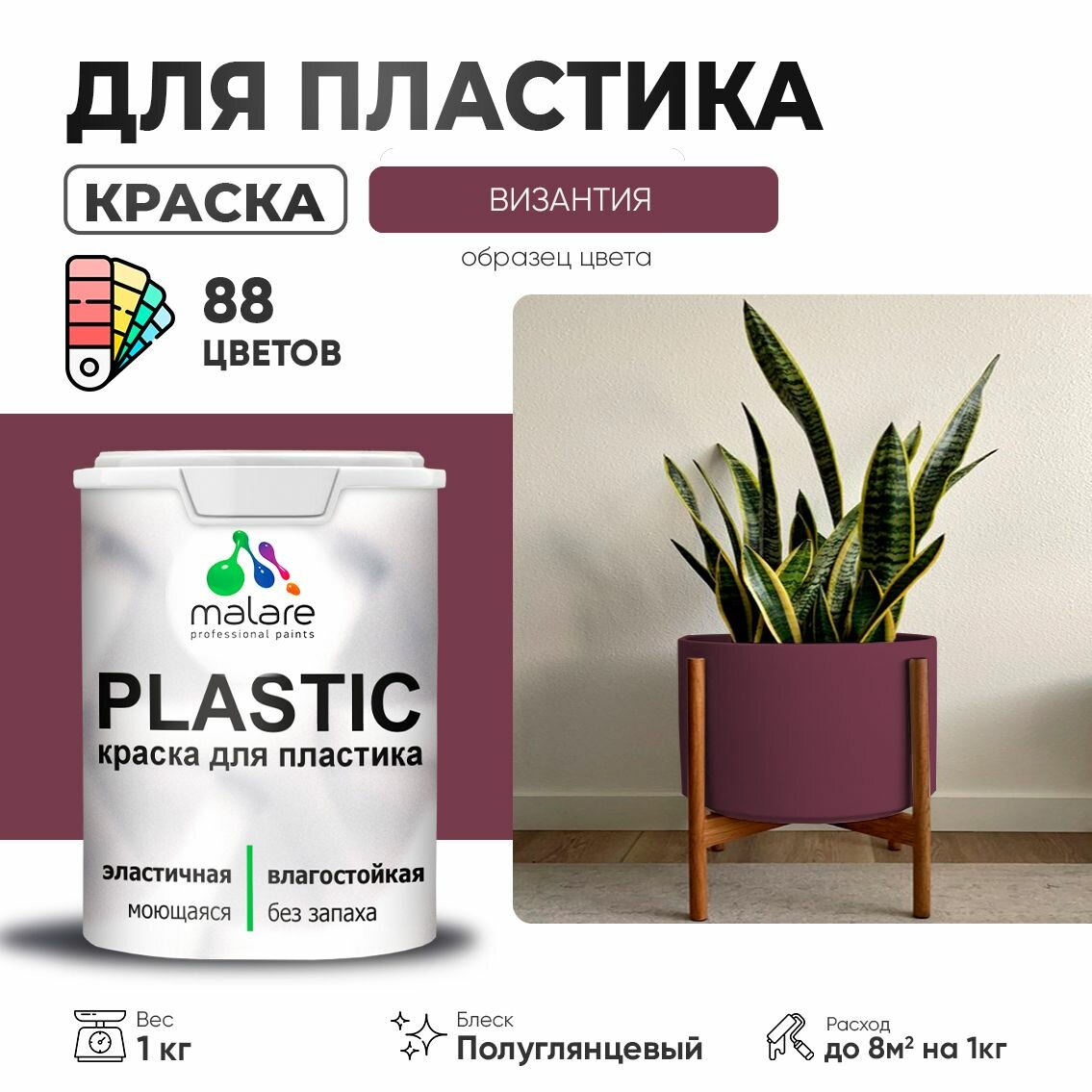 Купить Резиновая краска для пластика Malare Plastic для пенопласта ПВХ сайдинга, для подоконников и откосов, быстросохнущая без запаха, полуглянцевая, византия, 1 кг