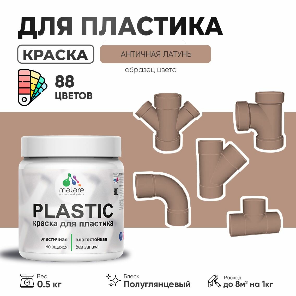 Купить Резиновая краска для пластика Malare Plastic для пенопласта ПВХ сайдинга, для подоконников и откосов, быстросохнущая без запаха, полуглянцевая, античная латунь, 0.5 кг