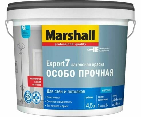 СохранитьКраска Marshall Export 7 особо прочная, латексная, глубокоматовое покрытие 4.5л интересное: