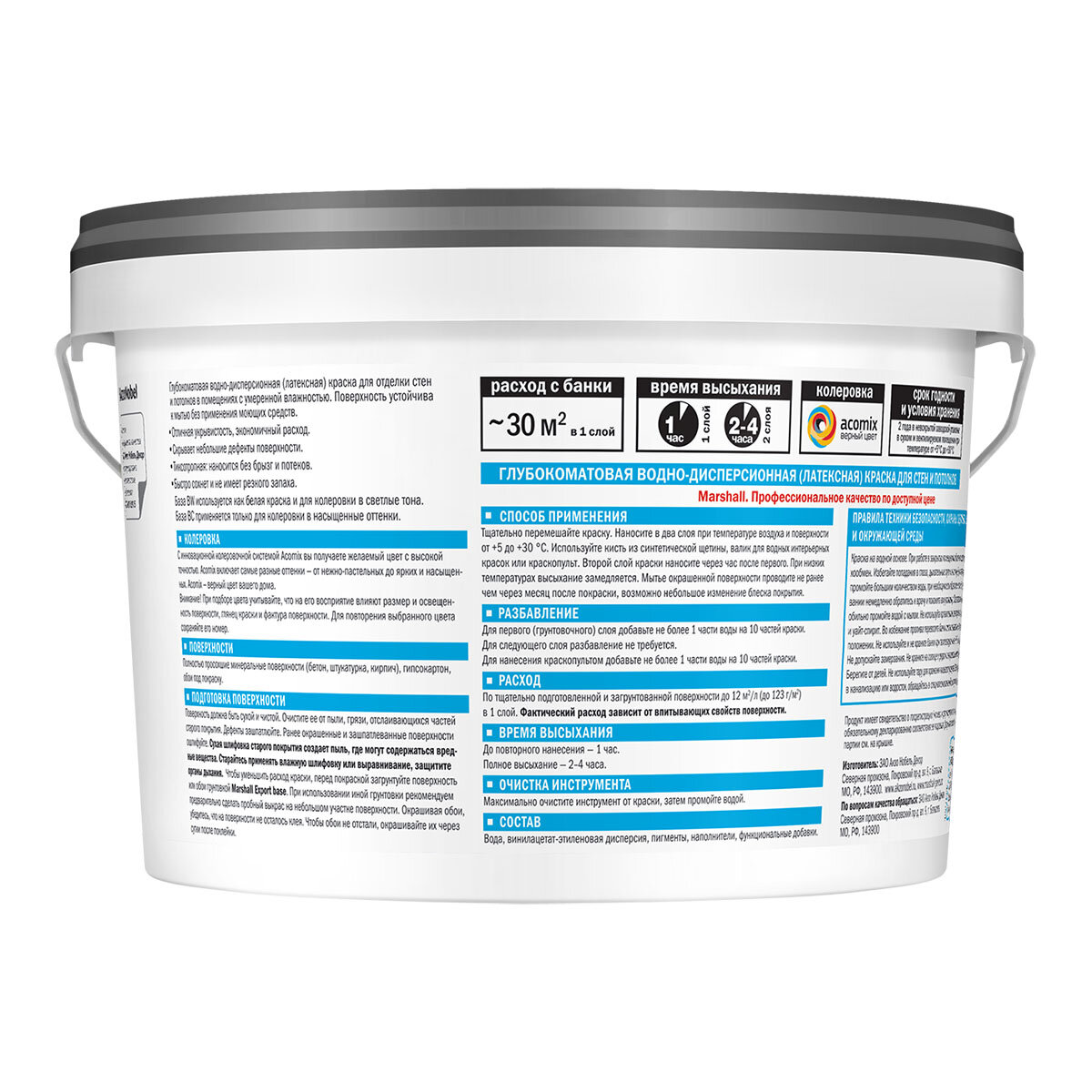 Краска для стен и потолков латексная Marshall Export-2 глубокоматовая база BC 9 л.