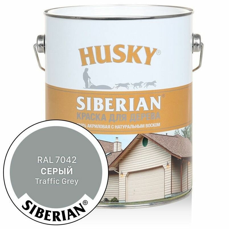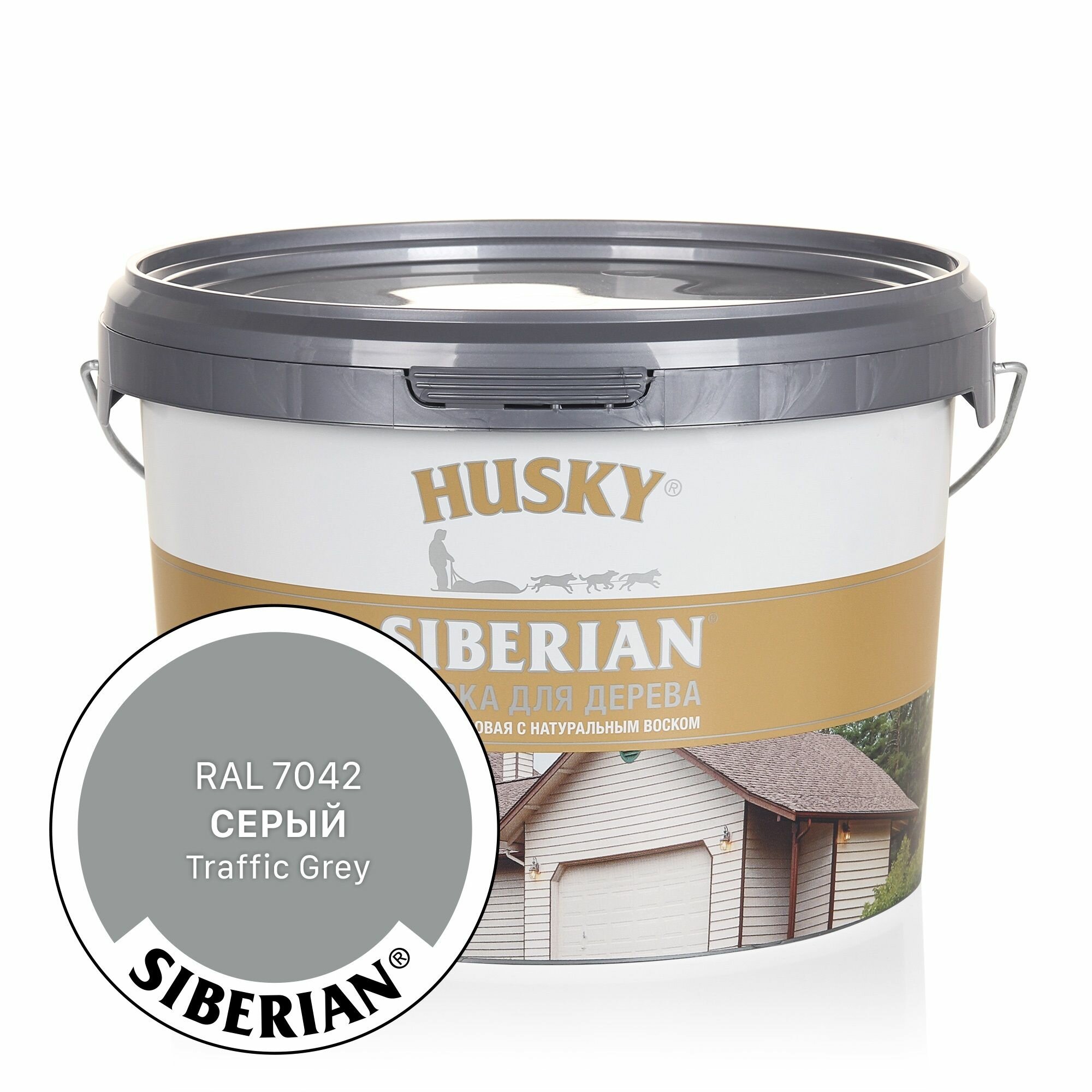 Купить Краска по дереву HUSKY SIBERIAN Серый RAL 7042, акриловая полуматовая, 2,7л