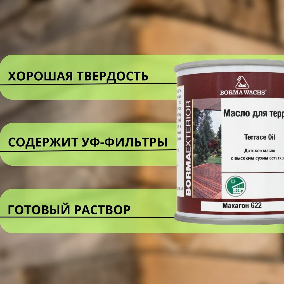 Масло для дерева BORMA WACHS Terrace Oil , Цветное масло для террас , Датское с высоким сухим остатком, Цвет 173 ТИК 0,125мл