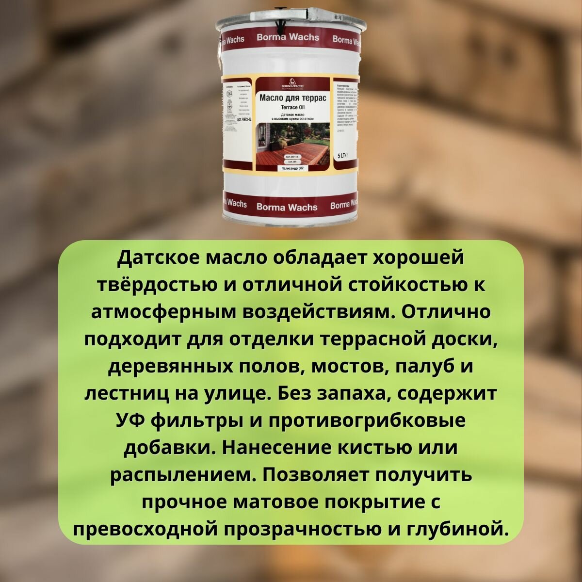 СохранитьМасло для дерева/террас датское BORMA TERRACE OIL 5л, 582 Палисандр 4972IL-DS582 интересное: