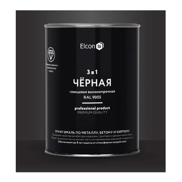 Купить Грунт-эмаль Elcon 3 в 1 глянцевая черная RAL 9005 0,8 кг