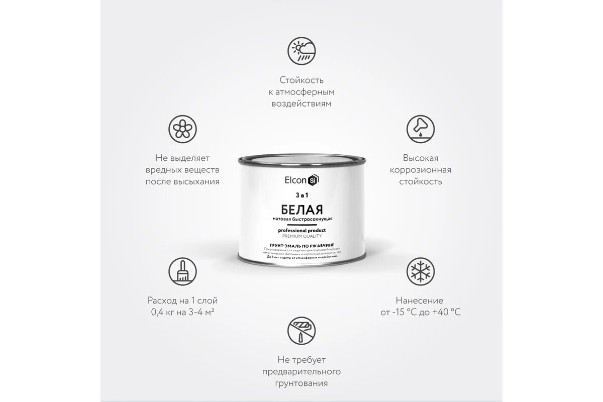 Грунт-эмаль по ржавчине 3в1 Elcon белая RAL 9003 матовая 0,8 кг