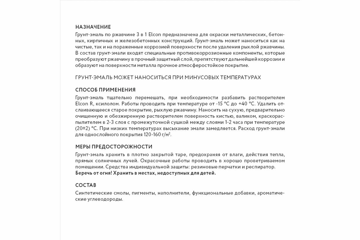 Грунт-эмаль по ржавчине Elcon 00-00462298
