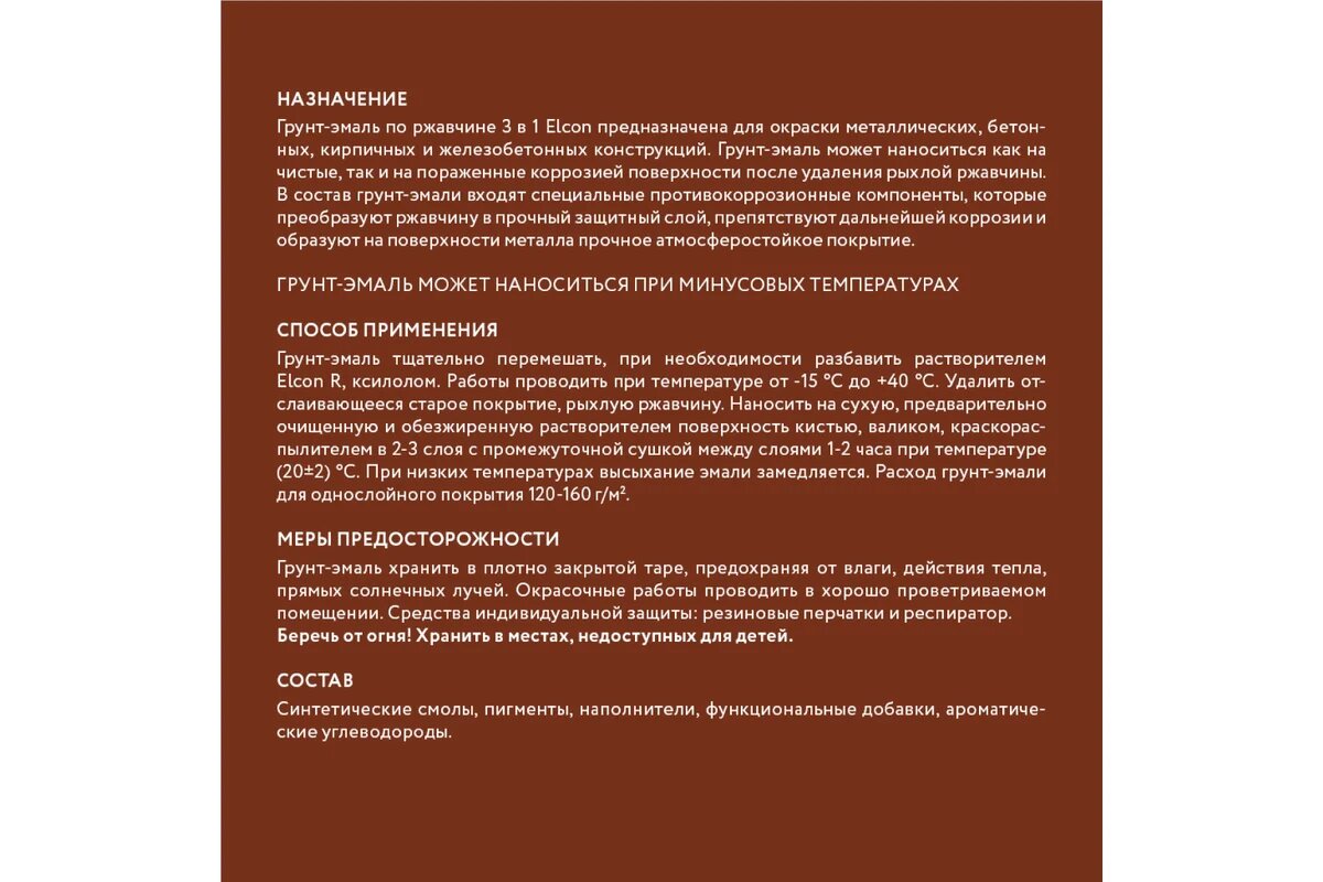 Купить Быстросохнущая грунт-эмаль по металлу Elcon (3 в 1 по ржавчине; матовая; красно-коричневая; 10 кг) 00-00462655