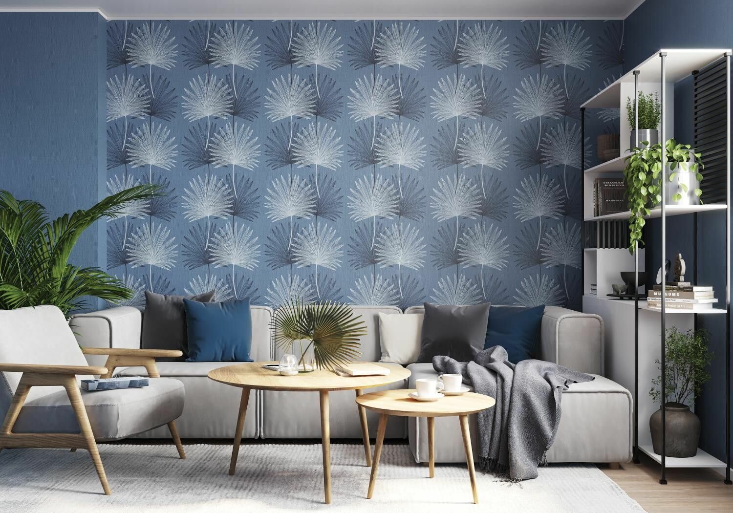 Обои флизелиновые 1.06 м х 10,05 м Marvig Nikau виниловые метровые ( горячее тиснение, моющиеся ) пальмовые листья