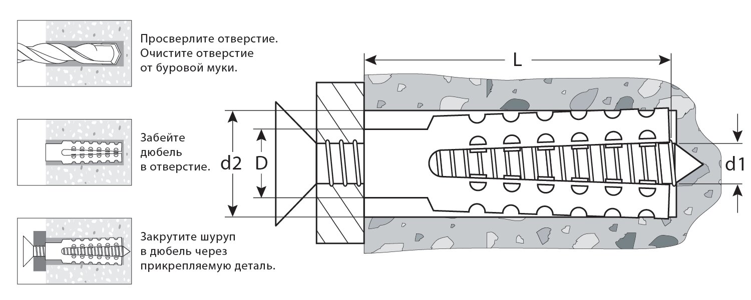 Дюбель-Гвоздь 6x40 мм с потайным бортиком (200шт.)