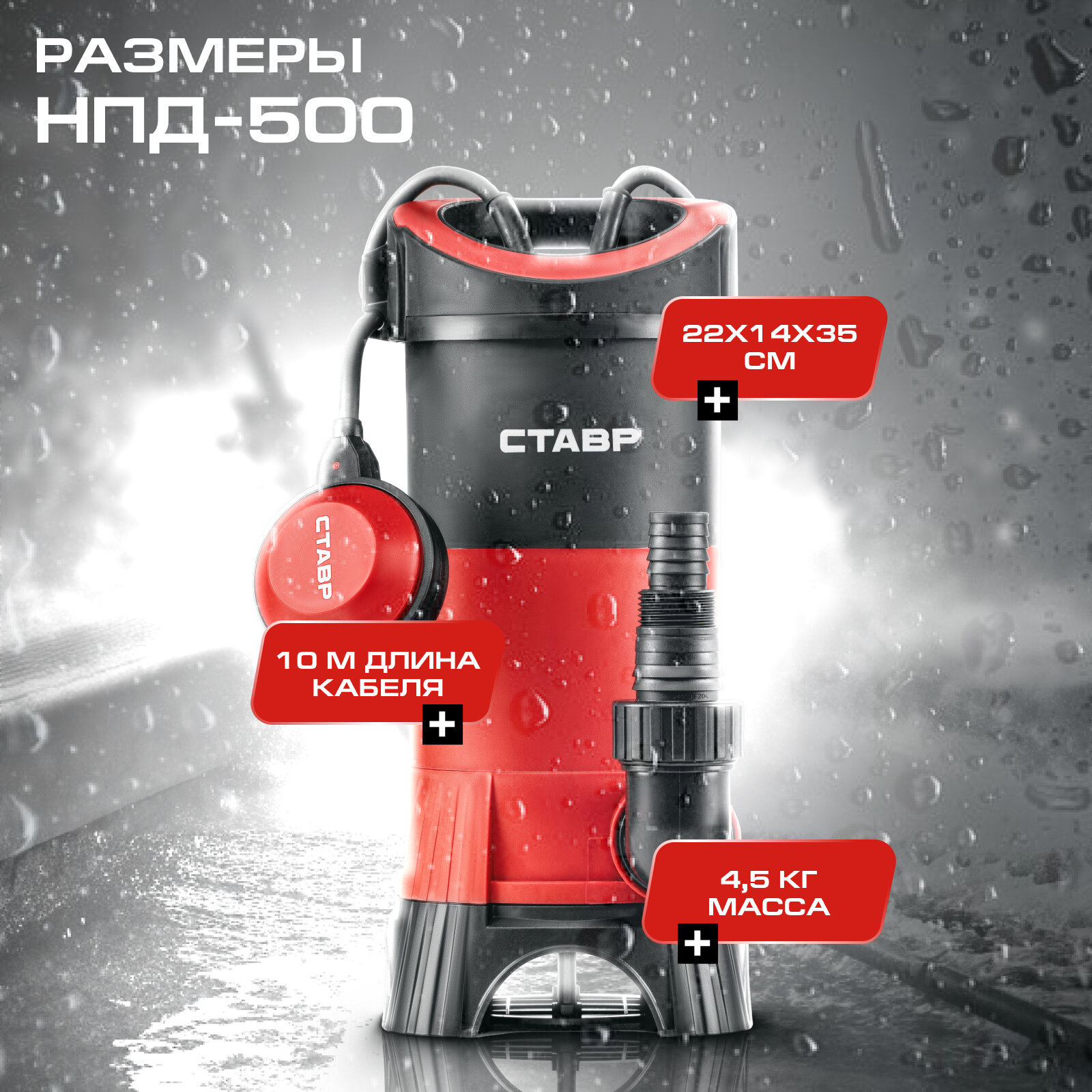 Насос дренажный СТАВР "НПД-500", погружной, поплавковый, пластик, 500Вт интересное: