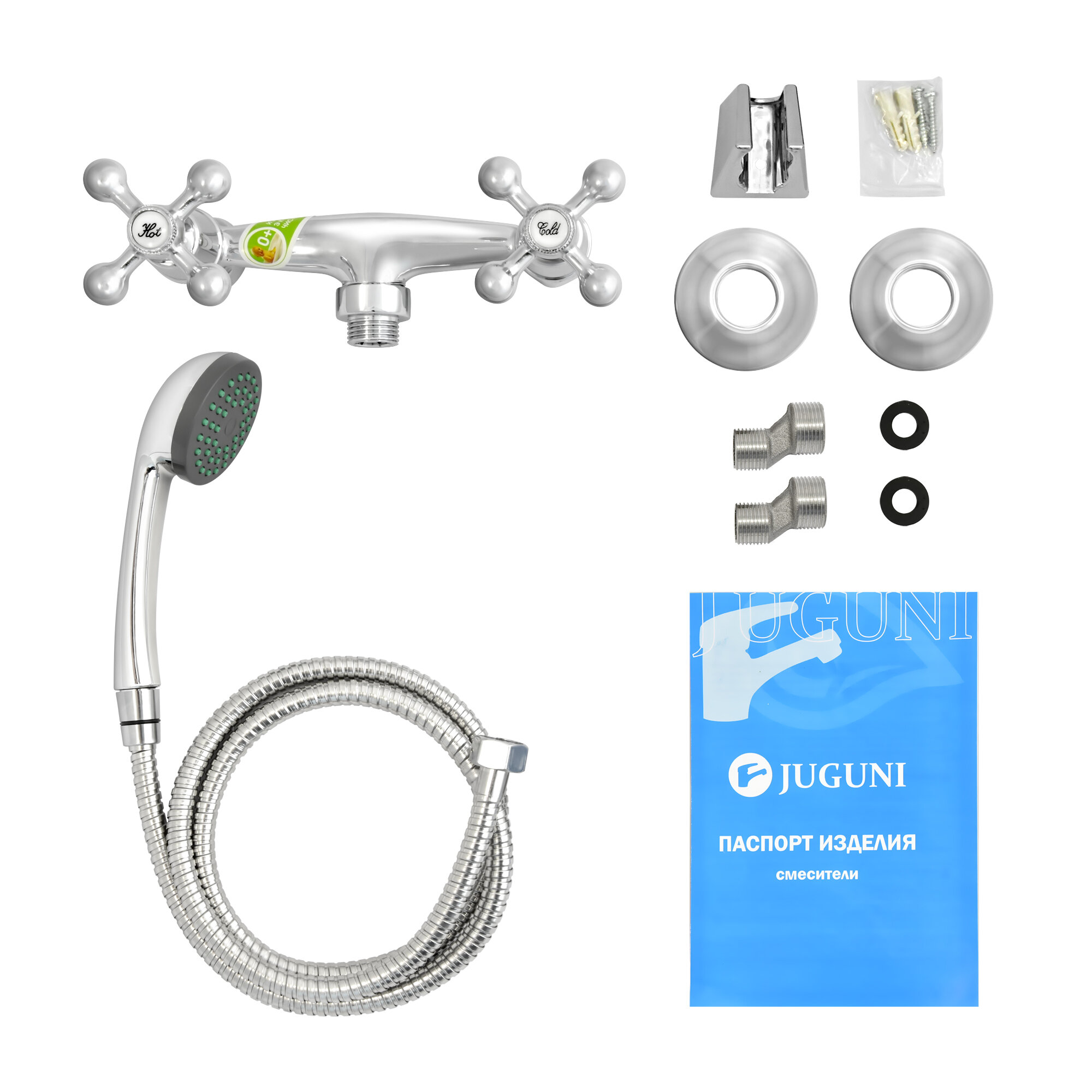 Двуручный смеситель для душа Juguni со шлангом, хромированной лейкой и кронштейном JGN0624 0402.755