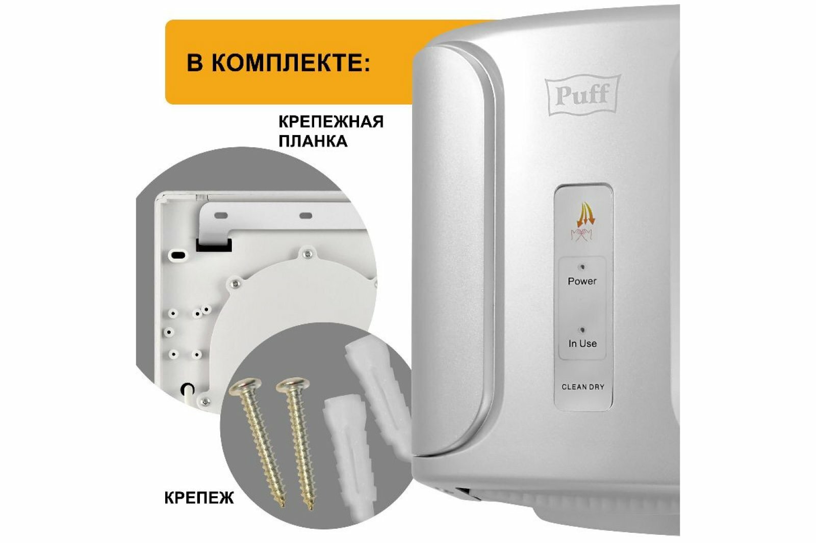 Сушилка для рук Puff 8806C 1000Вт серебристый интересное: