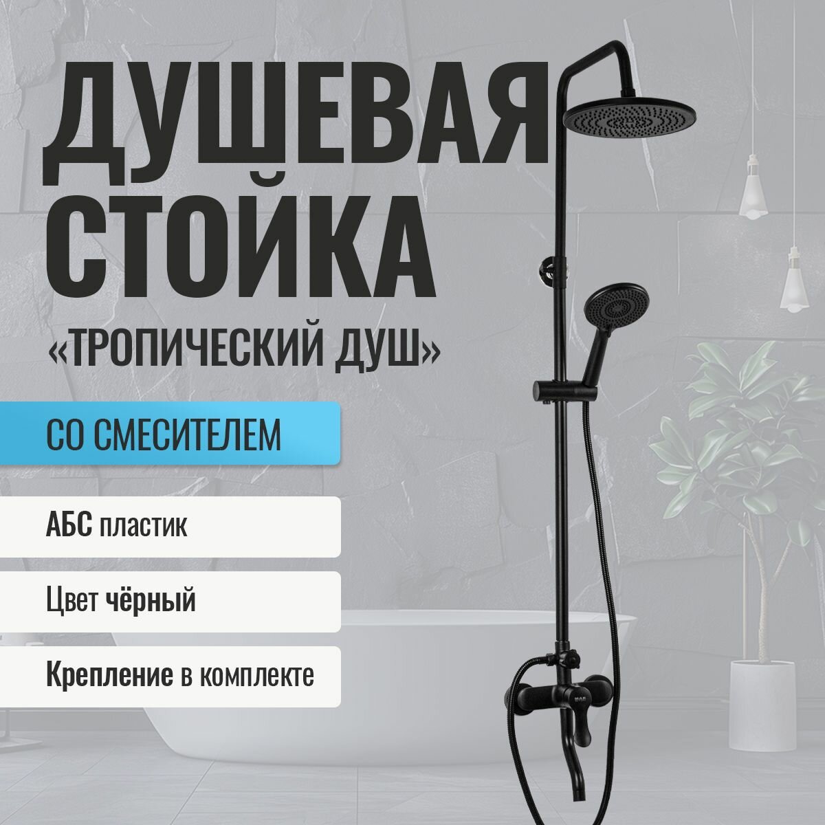 Смеситель + стойка душевая "тропический душ" с двумя лейками, чёрный