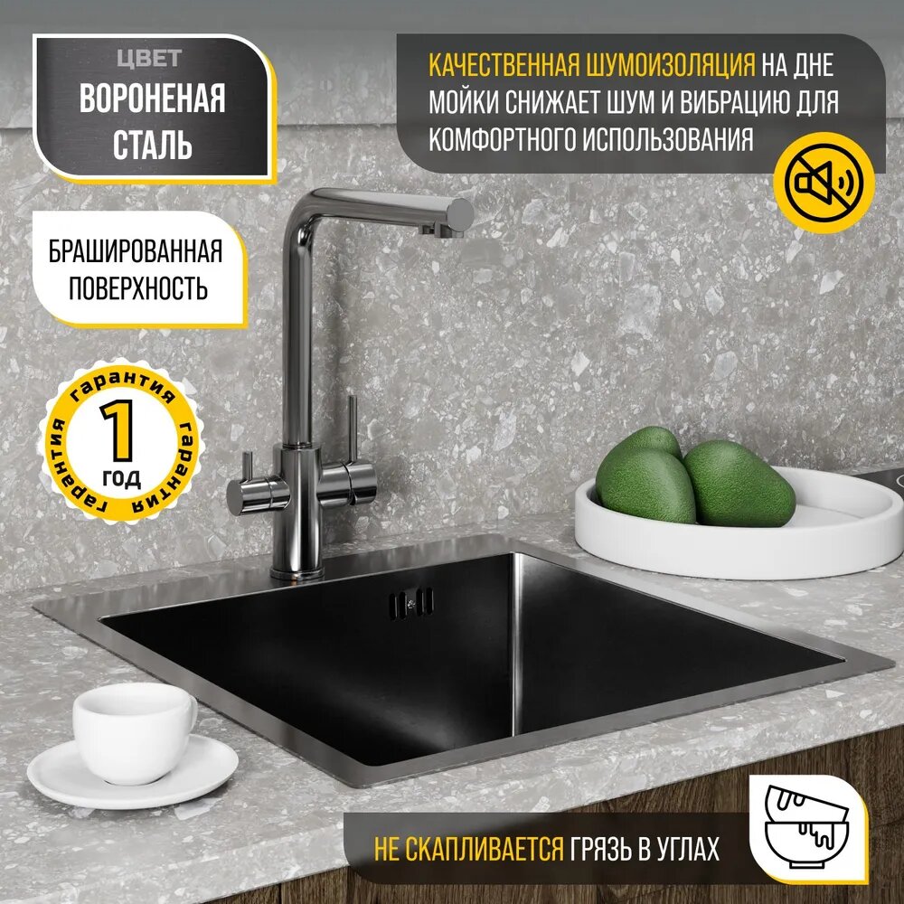 Купить Кухонная мойка FLORACIO Steel F.4651. GM, вороненая сталь
