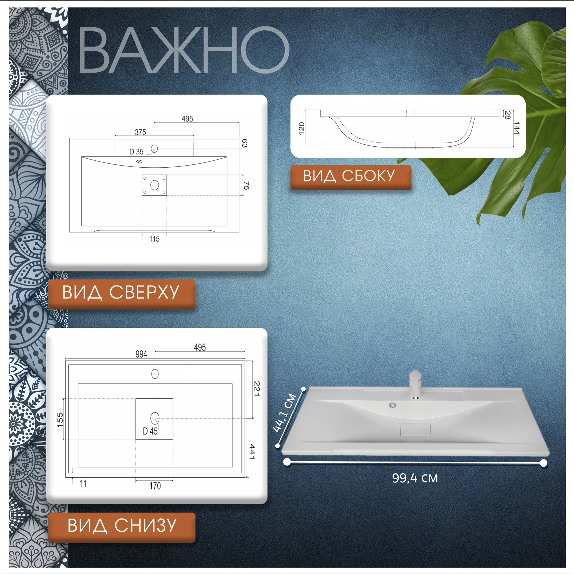 Раковина мебельная Комфорт 100, накладная, белая, литьевой мрамор, 100х44 интересное: