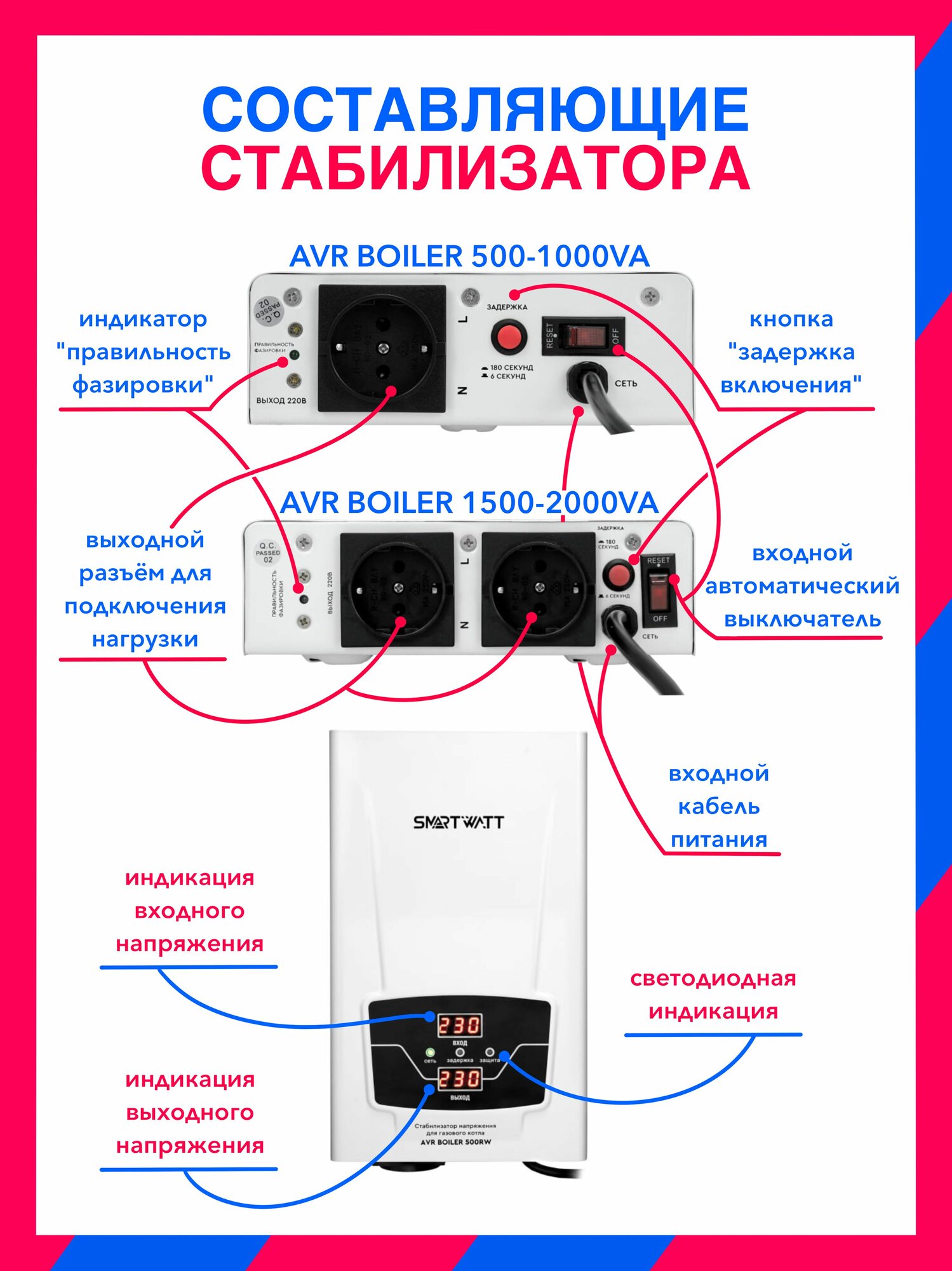 Купить Стабилизатор напряжения для газового котла 1кВА SMARTWATT AVR BOILER 1000Вт (1000ВА) релейный, настенный однофазный для систем отопления и водоснабжения, насоса, каскада котлов