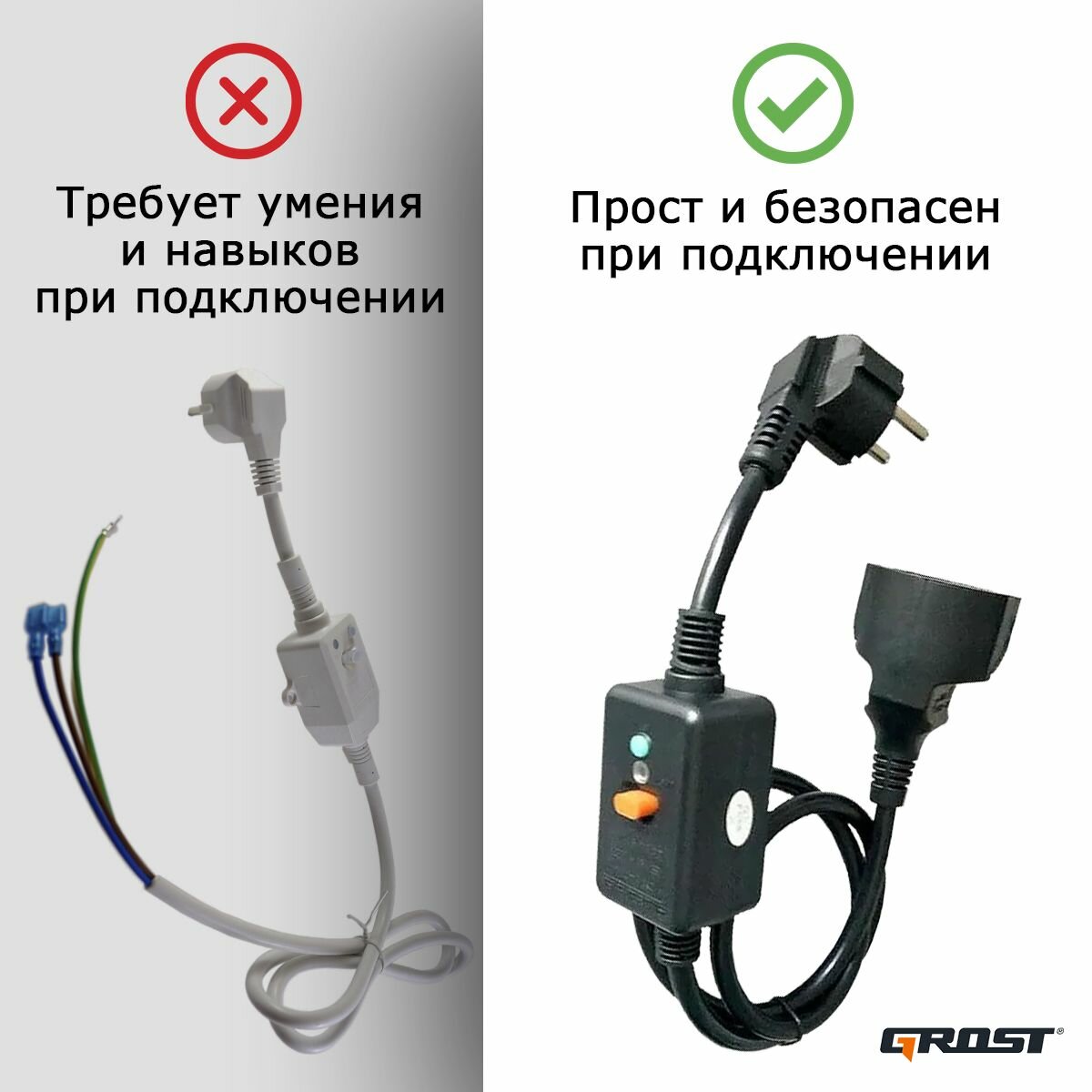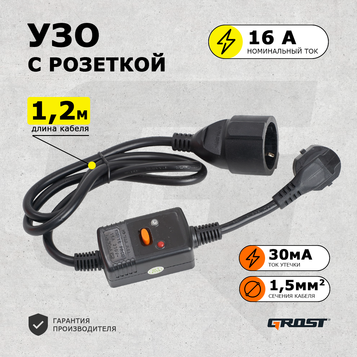 Устройство защитного отключения GROST (грост) (УЗО 16А) на кабеле 30 мА, 1,2м. черный интересное: