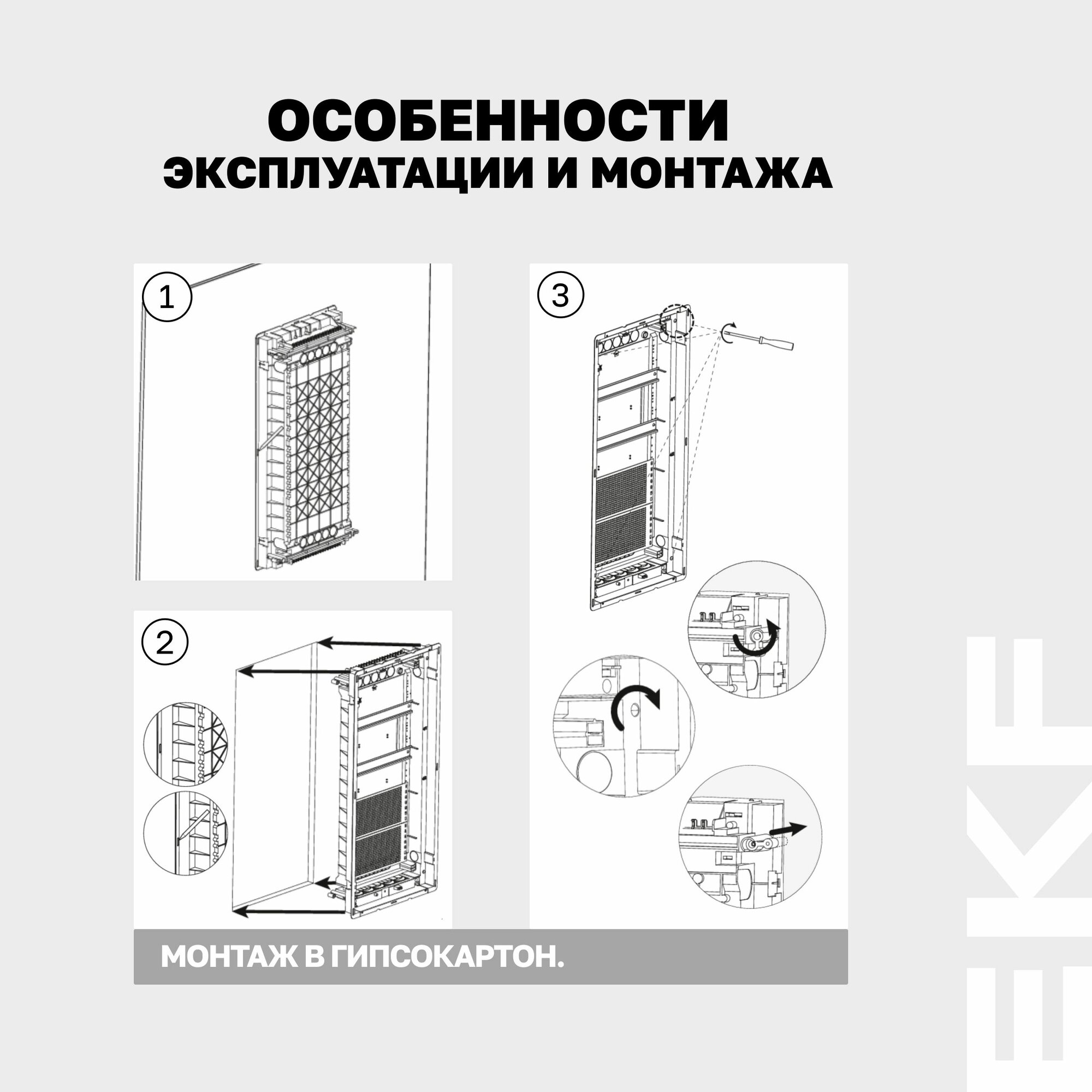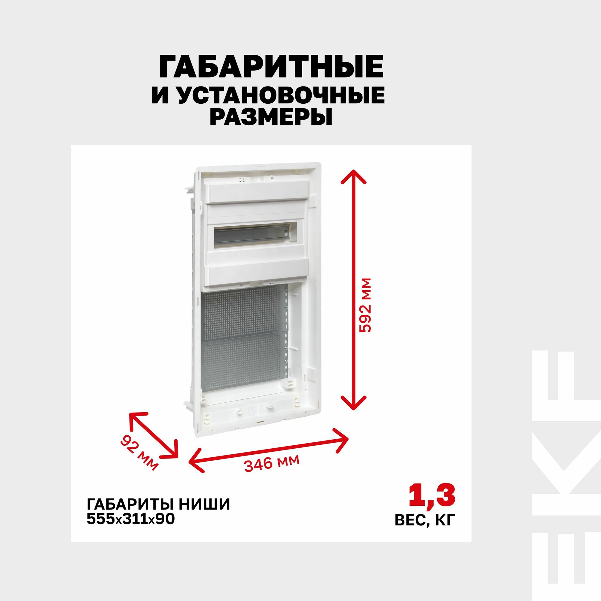 СохранитьОснование для комбинированного щита EKF "Nova", 12 модулей, 1 ряд плюс 2 монтажные платы 100 х 250, 1 DIN-рейка, 3 габарит - щиток электрический и слаботочный щит в одном основании (Дверь приобретается отдельно) интересное: