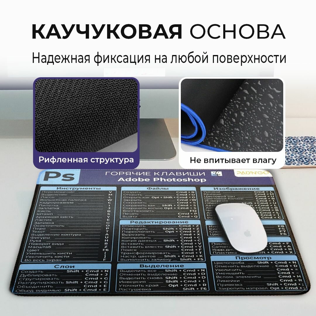 СохранитьКоврик для мышки игровой, 300*250*2 мм, Горячие клавиши Photoshop для MacOS интересное: