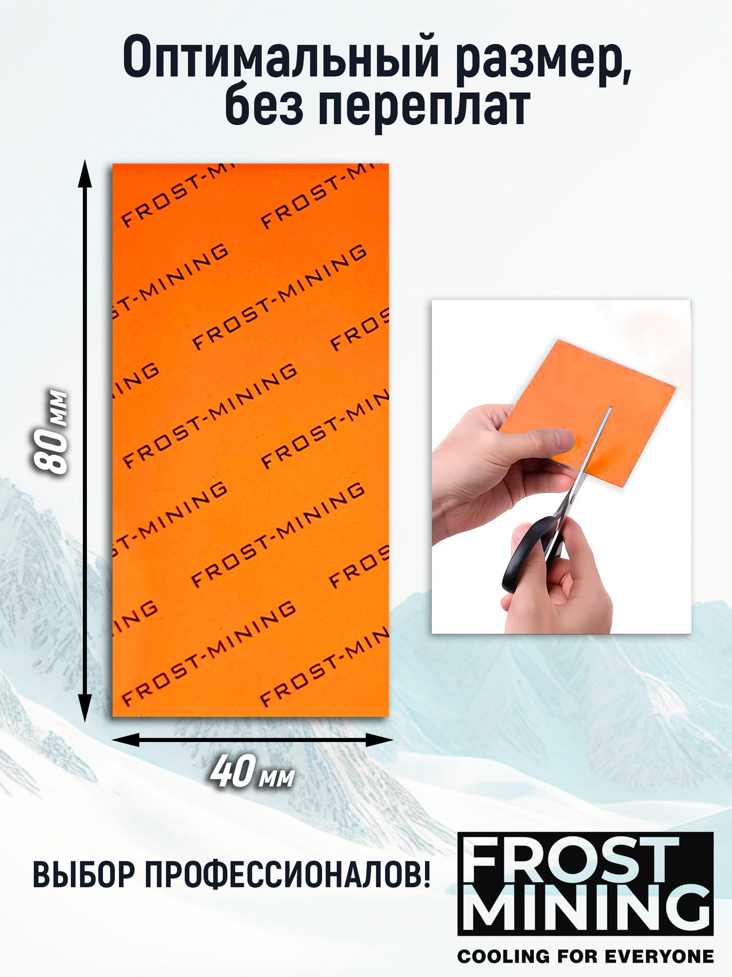 Термопрокладка 0.5 мм 20 Вт/мК 80*40 мм для видеокарты, ноутбука, консоли, компьютера, ссд, асика FrostMining Maximum Thermal Pads