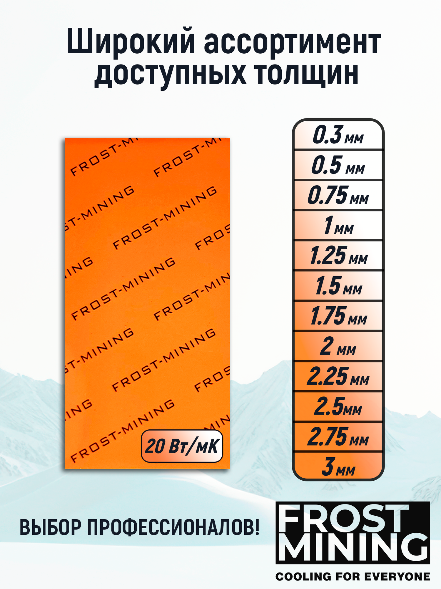 Термопрокладка 2.5мм 20 Вт/мК FrostMining Maximum Thermal Pads V3