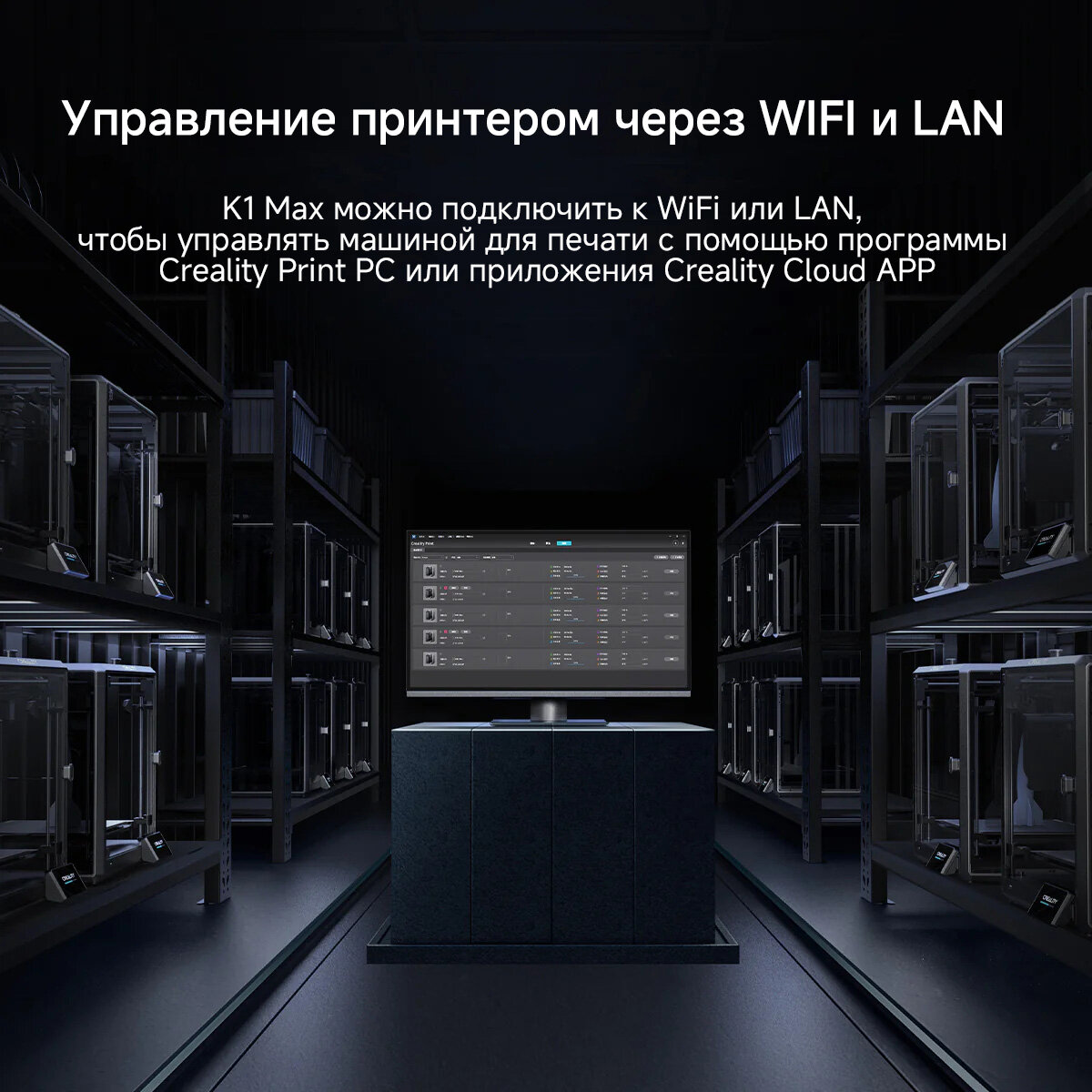 Сохранить3D принтер K1 Max Creality. Закрытый корпус, С камерой, С экраном 4.3", С PEI Столом, Технология FDM, Рабочая область — — 300×300×300мм, Скорость — — 600мм/с, Автоматическая калибровка, Поддержка USB соединения, WIFI, RJ45 интересное: