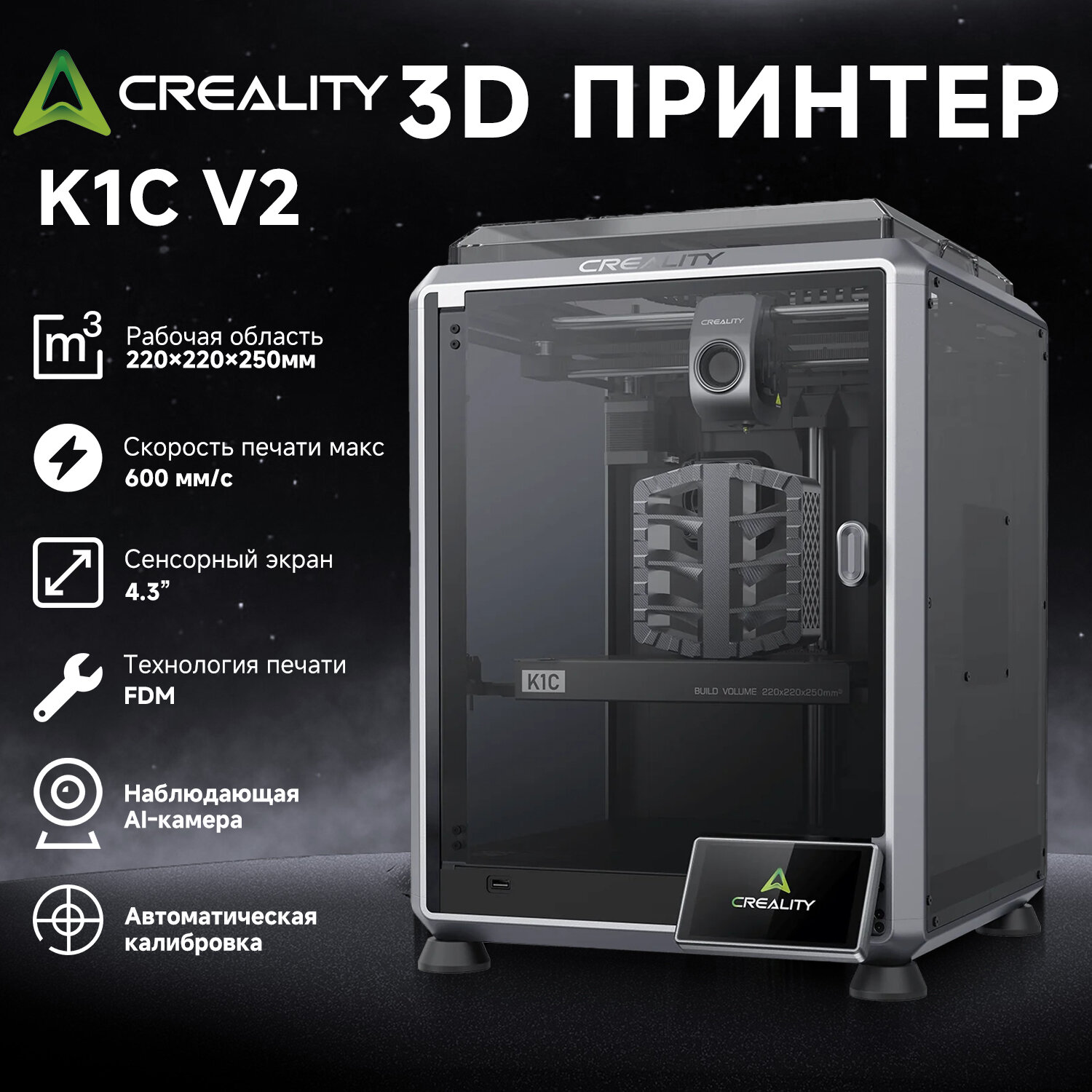 Сохранить3D принтер K1С Creality. Закрытый корпус, С камерой, С экраном 4.3", С PEI Столом, Технология FDM, Рабочая область — — 220×220×250мм, Скорость — — 600мм/с, Автоматическая калибровка, Поддержка Bluetooth, WIFI, RJ45 интересное: